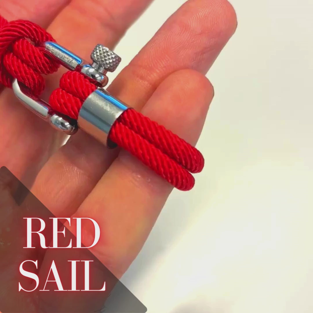 Está fabricada con cuerda marina roja y hebilla plateada y es finalizada con metal dándole un toque perfecto de estilo.