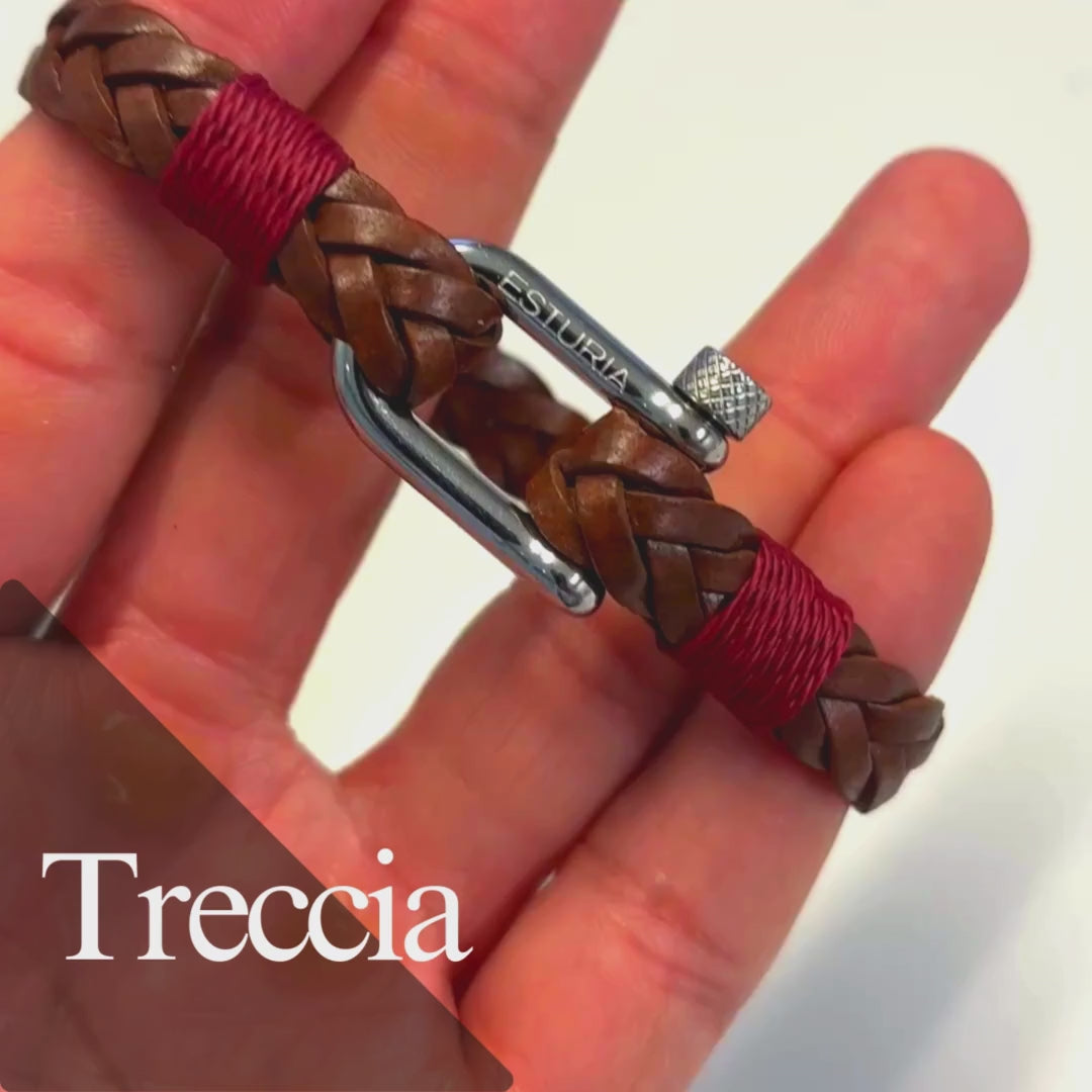 Proyecta exclusividad con nuestra pulsera estilo italiano Treccia. Con su trenzado en marrón y acabado en burdeos, esta pulsera es estilosa y sofisticada. Perfecta para complementar cualquier atuendo con un toque de moda.